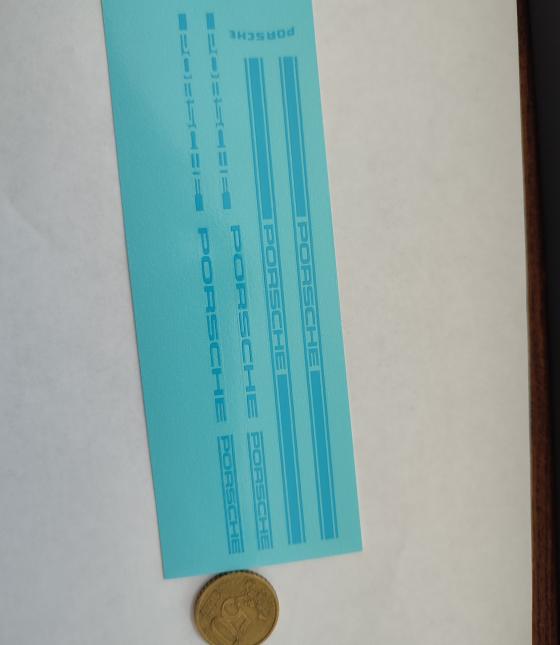 Décalcomanie à l'eau, thème de la planche « Flanc Porsche bleu clair 911 », échelle 1/18e.