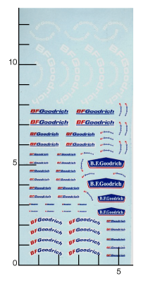 Décalcomanie à l'eau, thème de la planche « Goodrich », échelle 1/43e - 1/18e.