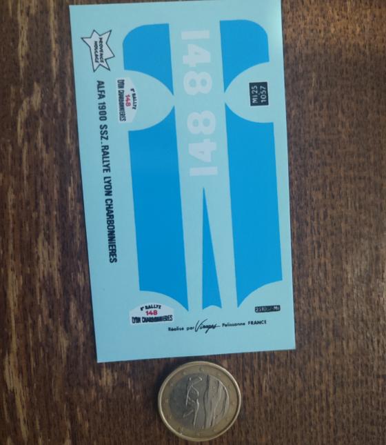 Décalcomanie à l'eau, thème de la planche « Alfa 1900 SSZ Rallye Lyon Charbonnieres ». Référence du catalogue : C1