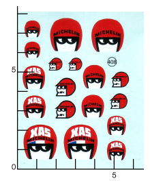 Décalcomanie à l'eau, thème de la planche « michelin casque rouge », échelle 1/24- 1/18e.