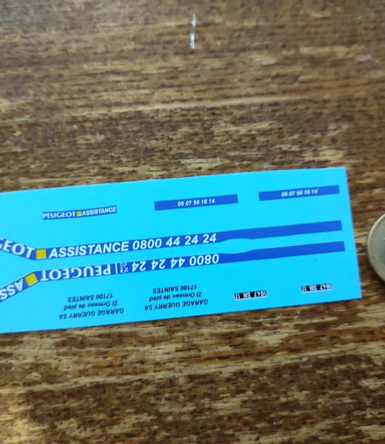 Décalcomanie à l'eau, thème de la planche « peugeot assistance bleu ». Référence du catalogue : news