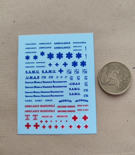 Décalcomanie à l'eau, thème de la planche « ambulance samu 1/87 .