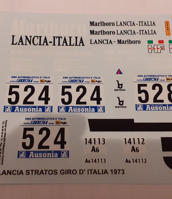 décals décalcomanie lancia stratos giro italia 1973 1/24
