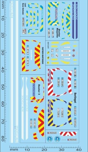Réf.: décals43.com Gendarmerie divers voitures 1/87 Décalcomanies 83x40mm