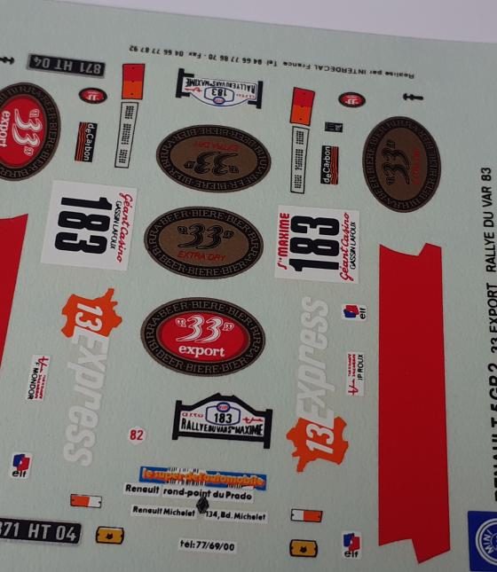 DECALCOMANIE DECALS renault r5 turbo gr2 33 export var 1983 1/43 rose