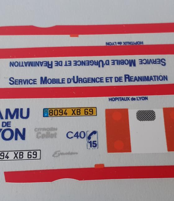 decals décalcomanie samu de lyon sur citroen evasion 1/43 cahier A