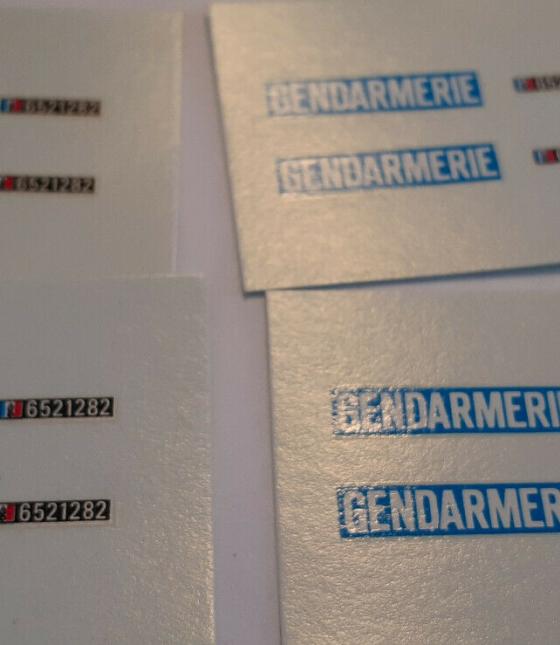 Réf.: decals decalcomanie deco divers mot gendarmerie sur fond bleu clair 1/43