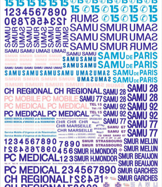 decals decalcomanie deco divers pub samu 15 smur pc ch 1/43