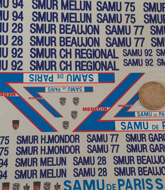 decals decalcomanie divers samu de paris grande planche 1/43