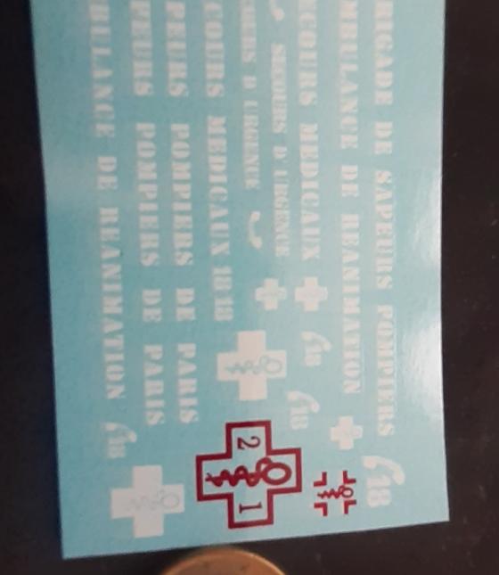 Réf.: decals decalcomanie inscription blanche 1/43 pompier blanche caduce reanimation