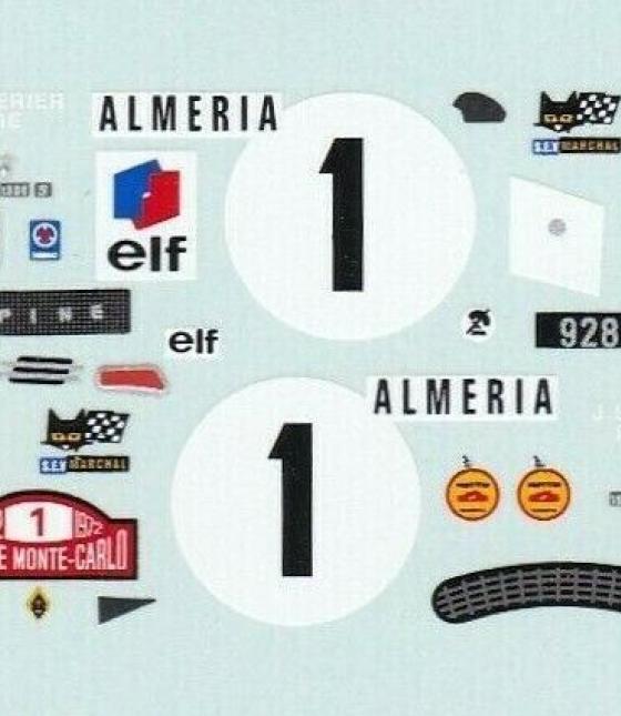 Réf.: decals DECALCOMANIE Monte Carlo 1/43 - Renault Alpine A110 N°1 1972 J L Therier