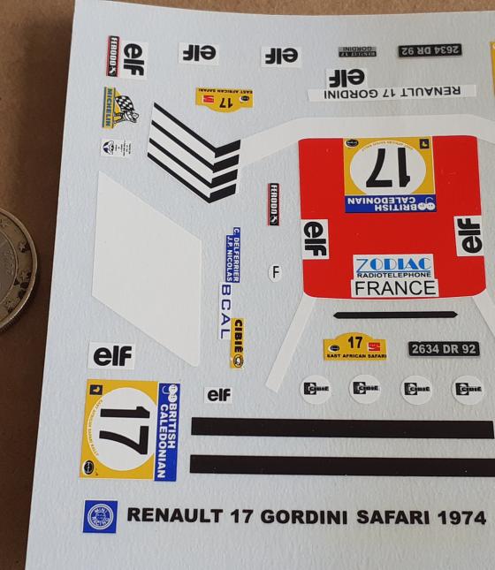 Réf.: decals decalcomanie rare renault r17 gordini safari 1974 1/43