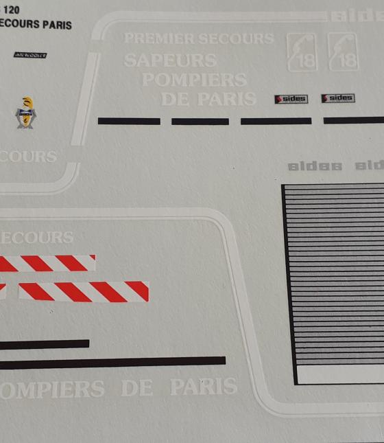 decals decalcomanie sapeurs pompiers de paris premier secours 1/43
