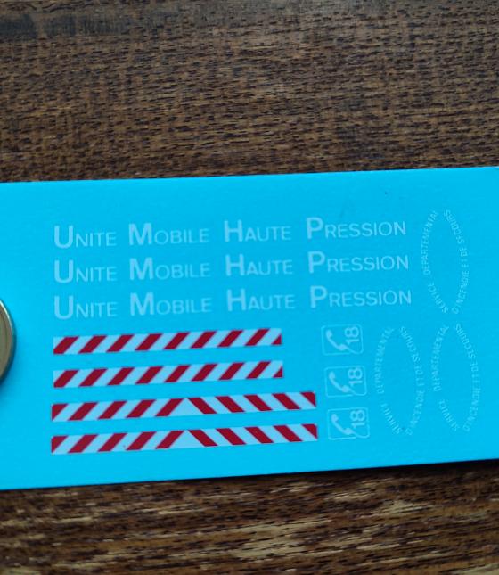 Décalcomanie à l'eau, thème de la planche « Pompier unité mobile haute pression », échelle 1/43e.